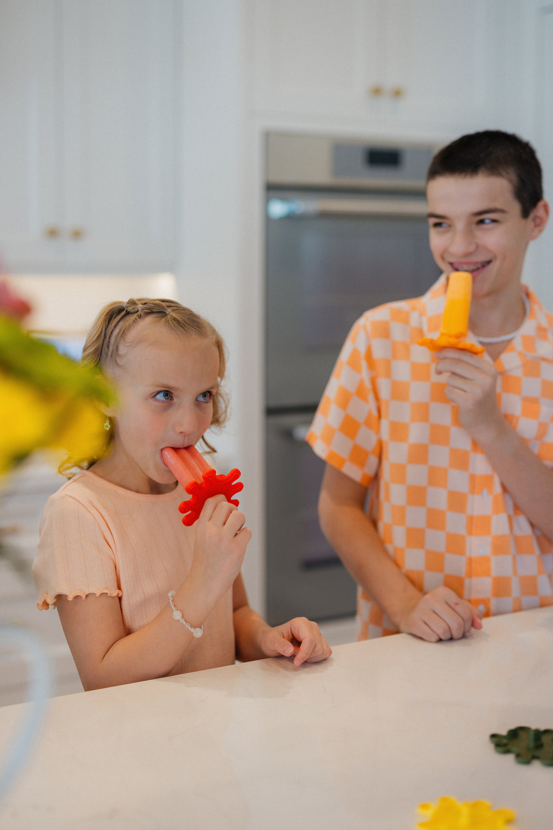 Tired of cleaning sticky fingers? How about holding someone else's half-eaten popsicle and finding melted popsicles around the house? Or maybe you don't like having a hand tied down for the entirety of your snack break. You're definitely not the only one! Sticky Stand is first and foremost a popsicle stand! It's patent-pending design let's you set your popsicle down almost anywhere, holding your popsicle upright. When you want to pick it back up, grab the Sticky Stand by its handles and the stick will slide right through, letting you grab hold of it. Sticky Stand is also a drip guard, catching melting popsicles and keeping hands clean.